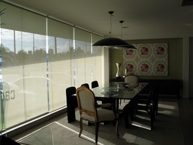 Tecidos de alta tenacidade impregnados com pvc tratados com uv, indicados para confecção de sombreadores, cortinas solares, decoração em Ombrelones e em toldos com filme cristal.